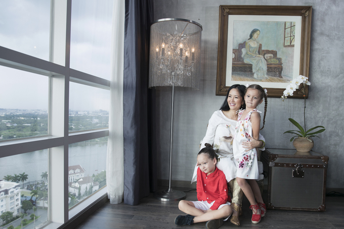 Sau khi ly hôn doanh nhân người Mỹ, Hồng Nhung và hai con tạm thời không sống ở khu nhà vườn rộng hàng trăm m2 mà chuyển tới ở trong căn chung cư cao cấp ở quận 2 (TP.HCM).