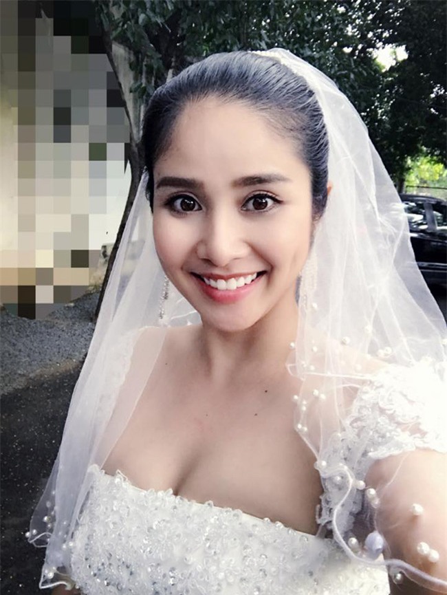 Khoác lên trang phục cô dâu, nữ diễn viên khoe vẻ tươi tắn rạng rỡ.