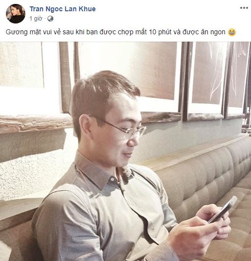 Mới đây, Lan Khuê khoe ảnh chồng sắp cưới John Tuấn Nguyễn trên trang cá nhân và viết: "Gương mặt vui vẻ sau khi bạn được chợp mắt 10 phút và được ăn ngon". Bên dưới phần bình luận, fan tỏ ra ghen tị và trêu rằng Lan Khuê đang "đánh dấu chủ quyền" với bạn trai đại gia.