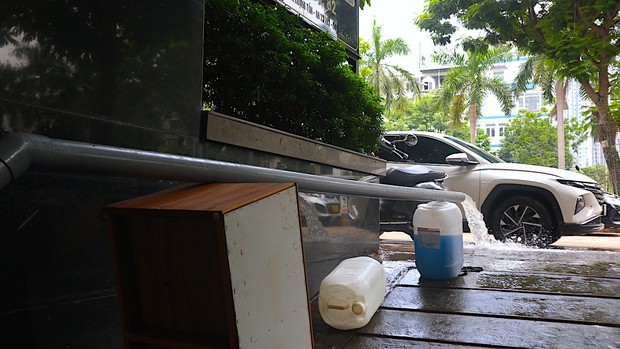 Toàn bộ tầng hầm của biệt thự, nhà liền kề khu vực này đều bị ngập nước.