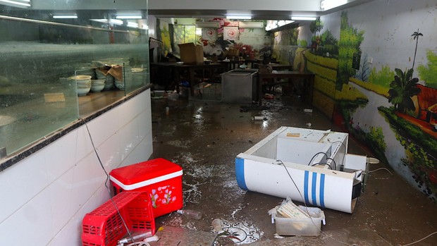 Nhiều cửa hàng phải huy động nhân viên tới dọn dẹp.