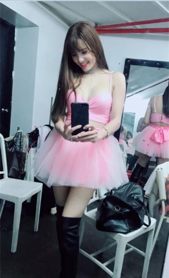 Sau scandal bị một người phụ nữ mang thai tố ‘giật chồng’ và làm việc ở quán bar tại Singapore, em gái Công Vinh đã khóa facebook. Mới đây, cô đã mở lại face, cô đăng ảnh khoe nhan sắc xinh đẹp và thân hình quyến rũ nóng bỏng với chiếc váy hồng.