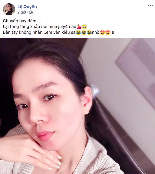 Những tưởng cuộc chiến đọ nhẫn kim cương giữa Hồ Ngọc Hà và Lệ Quyên đã kết thúc thì mới đây, dân tình lại phát hiện thêm diễn biến mới. Cụ thể trên Facebook cá nhân, Lệ Quyên gây chú ý khi đăng tải khoảnh khắc đời thường mới nhất. Trong đó, chia sẻ "bàn tay không nhẫn. Em vẫn kiêu sa" của Lệ Quyên khiến nhiều người hâm mộ cho rằng dường như cô ẩn ý phản pháo Hồ Ngọc Hà.