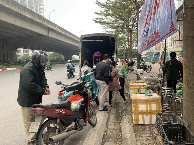Người dân Thủ đô đổ xô đi mua gà giải cứu trên đường Tam Trinh (Hà Nội). Ảnh: Phi Hùng.