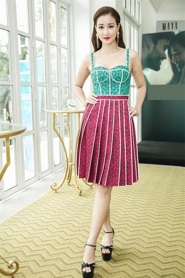 Giữ ồn ào đá xéo nhau với Tâm Tít - vợ của tình cũ - Maya xuất hiện với thần thái rạng rỡ trong buổi ra mắt MV mới. Từ sau khi công khai "đập mặt đi làm lại", nữ ca sĩ trông xinh đẹp và trẻ trung hơn hẳn. Thế nhưng, trong sự kiện tuần qua cô lại mất điểm do trang phục kết hợp màu sắc thiếu ăn ý.