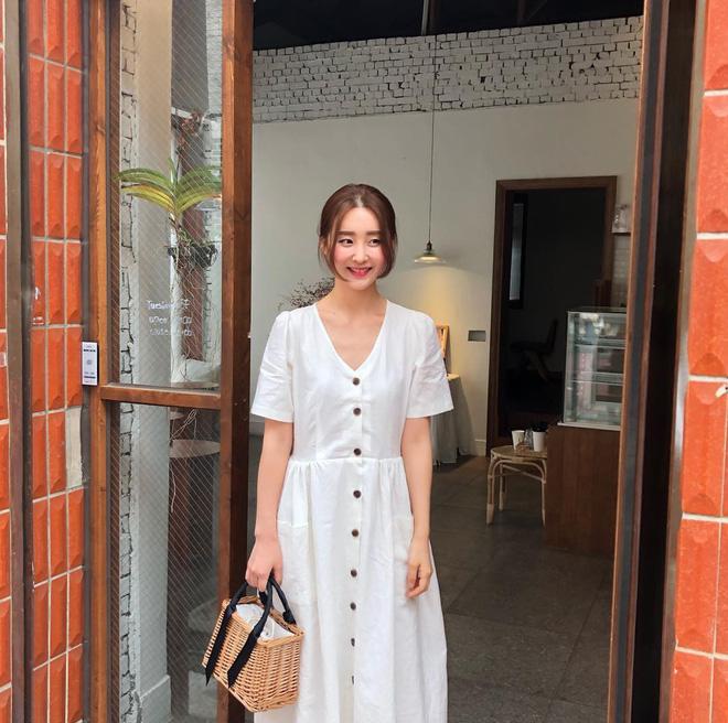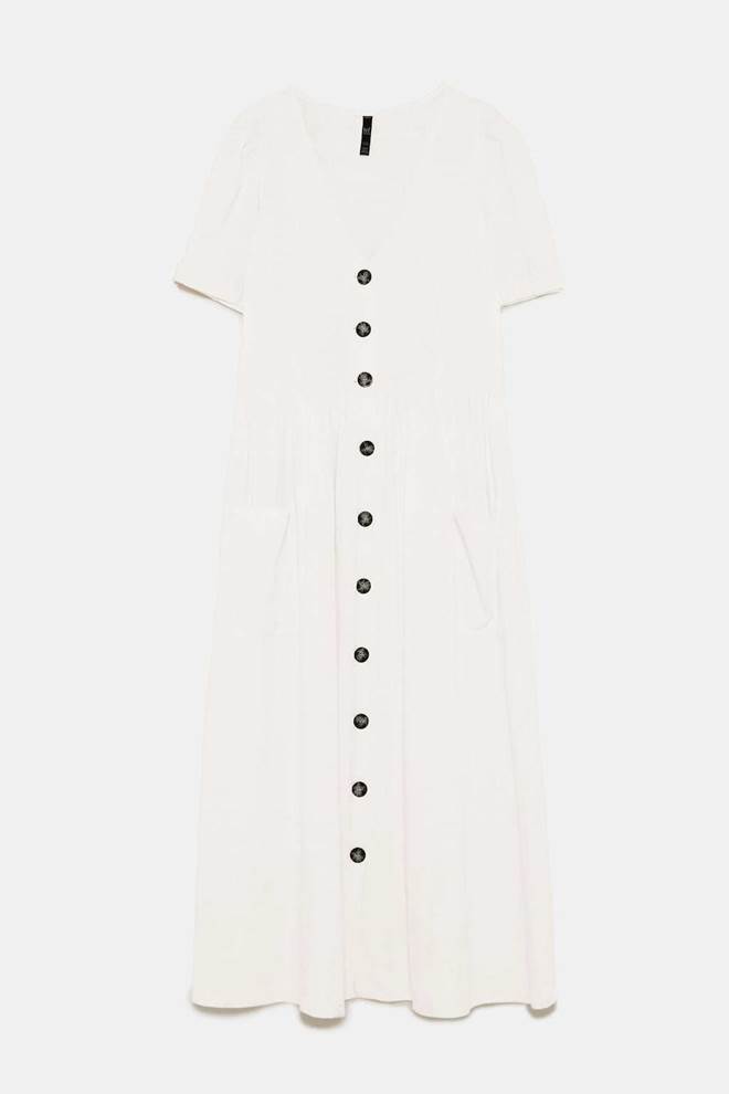 Chiếc váy tắng tinh khôi có hàng nút đặc trưng của thương hiệu bình dân Zara, được bán với giá 1,1 triệu đồng.