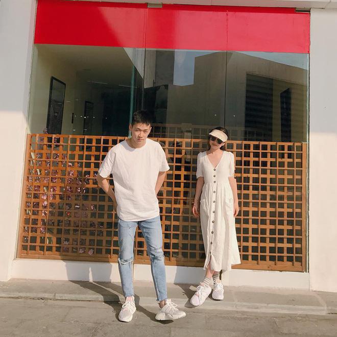 Bà xã của Ba Duy phối cùng sneaker và mũ Hàn Quốc khéo léo và trẻ trung.