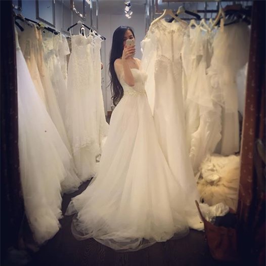 Mới đây, MC Minh Hà khoe ảnh đi thử váy cưới lên trang cá nhân.