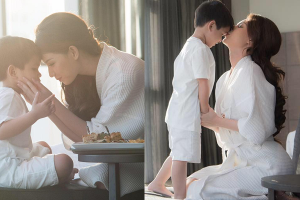 Phúc là một đứa trẻ rất là hiểu chuyện. Tôi tự hào vì Phúc có được một phần gene của tôi, của bố, của cả 2 bà nên thành ra mới 6 tuổi nhưng mà rất là ngoan và hiểu chuyện. Mỗi lần mẹ gọi điện sang đều nói chuyện nói mẹ, rồi nói “Con thương mẹ”, “Con nhớ mẹ”, biết hết rồi và rất là khéo léo.