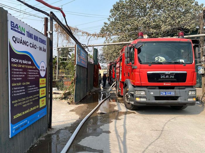 Nhận được tin báo, lực lượng Cảnh sát PCCC&CNCH được điều động đến hiện trường. Đến 13h15, đám cháy vẫn bùng lớn. Dãy nhà xưởng nằm sâu trong ngõ, nguồn nước hạn chế nên việc cứu hỏa gặp nhiều khó khăn.