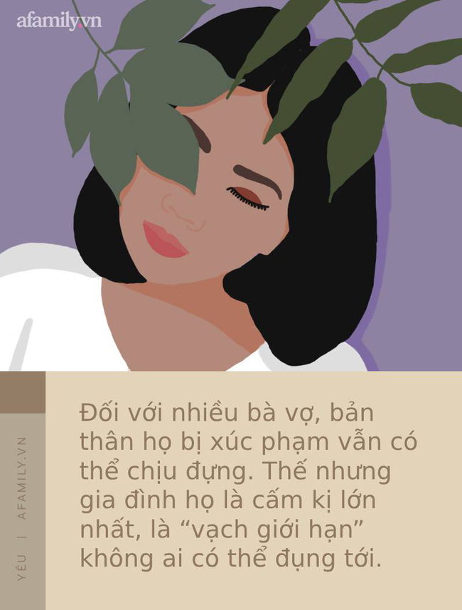 Đối với nhiều bà vợ, bản thân họ bị xúc phạm vẫn có thể chịu đựng. Thế nhưng gia đình họ là cấm kị lớn nhất, là “vạch giới hạn” không ai có thể đụng tới.