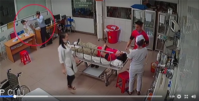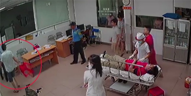 Một góc quay khác về hành động cầm ghế của ông Nguyễn Xuân Huân - Chủ tịch UBND phường Trung Đô trong phòng cấp cứu. (Đ.L) |
