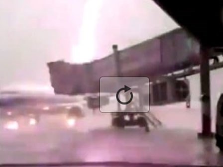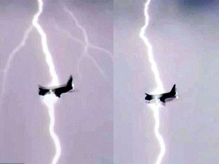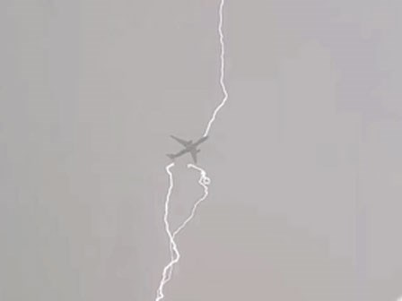 Cận cảnh luồng sét khổng lồ dội xuống máy bay chở khách