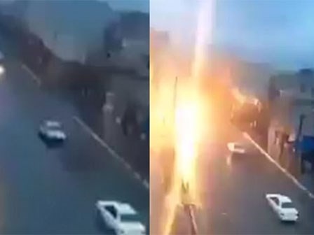 Trong đoạn video dài gần 1 phút, người xem có thể thấy chiếc xe đang lao đi với tốc độ rất nhanh thì bất ngờ bị sét đánh, bốc cháy dữ dội và mất phương hướng một lúc trước khi tài xế kịp nhảy ra ngoài đầy hoảng sợ.