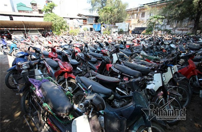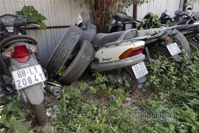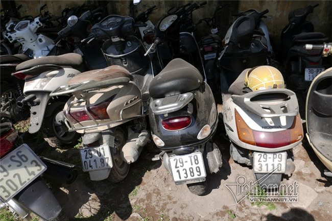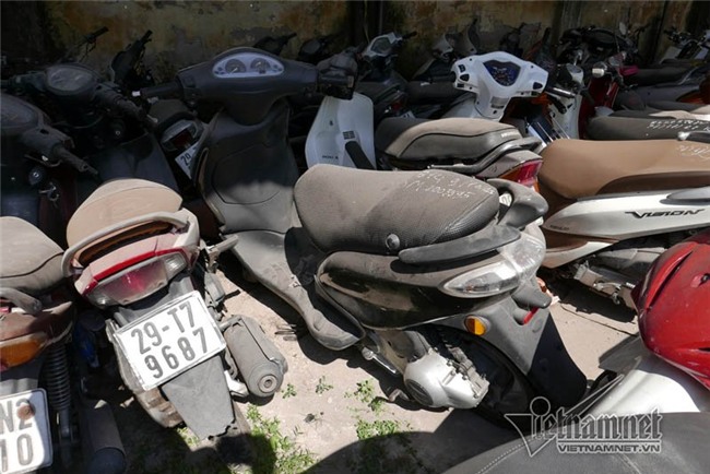 | Xe máy vi phạm giao thông "án binh bất động" nhiều tháng nay chờ chủ xe đến giải quyết |