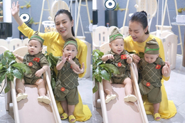 Phương Oanh mới đây lại cùng Shark Bình và cặp song sinh cosplay về thời cổ đại ở Hàn Quốc với trang phục hanbok.