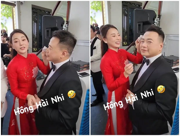 Trên trang cá nhân, Shark Bình đăng tải một khoảnh khắc tình cảm với Phương Oanh tại đám hỏi. Theo đó nữ diễn viên đứng lau mồ hôi cho Shark Bình, vừa chăm sóc chồng cô vừa cười rạng rỡ khen anh trẻ và trông giống Hồng Hài Nhi.