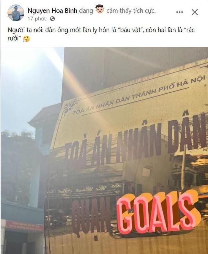 Mới đây, trên trang cá nhân shark Bình đăng tải trạng thái ẩn ý việc đang có mặt tại tòa để giải quyết vụ ly hôn. Kèm theo hình ảnh chụp tại TAND Hà Nội, Shark Bình viết: "'Người ta nói đàn ông một lần ly hôn là 'báu vật', còn hai lần là 'rác rưởi''.