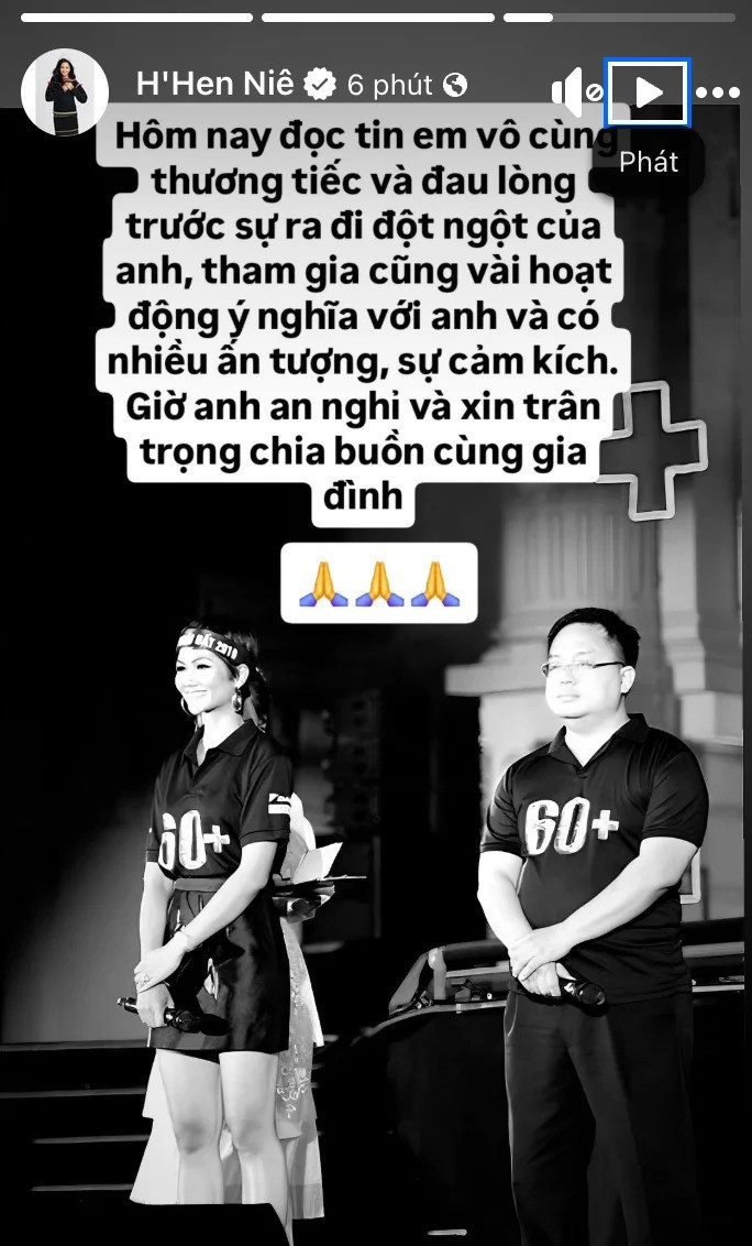 Hoa hậu H'Hen Niê cũng có chia sẻ hình ảnh đen trắng trong một sự kiện cùng ông Hoàng Nam Tiến. Nàng hậu buồn bã viết: "Hôm nay đọc tin em vô cùng thương tiếc và đau lòng trước sự ra đi đột ngột của anh, tham gia cũng vài hoạt động ý nghĩa với anh và có nhiều ấn tượng, sự cảm kích. Giờ anh an nghỉ và xin trân trọng chia buồn cùng gia đình".