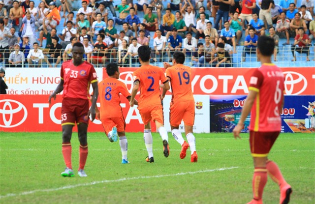 Trong khi đó, các cầu thủ Sài Gòn chơi đầy tự tin, họ chủ động đá áp sát và sớm có cơ hội ăn bàn. Phút 18, Sài Gòn bất ngờ vượt lên dẫn 1-0 sau pha đệm lòng dễ dàng của tiền đạo Nguyễn Xuân Nam. Ở tình huống này, hàng hậu vệ SHB Đà Nẵng cho thấy họ đã chơi không tốt.