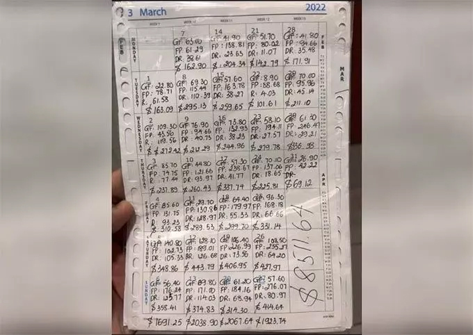 Tờ giấy viết tay được người shipper ghi lại bao gồm chi tiết tiền mỗi ngày từ mỗi nền tảng giao hàng. Điều này khiến cộng đồng mạng Singapore xôn xao.