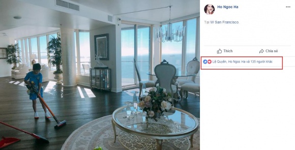 Thế nhưng mới đây, nhiều cư dân mạng tinh ý phát hiện ra Lệ Quyên đã có động thái thể hiện sự quan tâm tới Hồ Ngọc Hà. Cụ thể trên Facebook cá nhân, Hồ Ngọc Hà chia sẻ những hình ảnh của cô và con trai Subeo trong chuyến đi công tác tại Mỹ. Khoảnh khắc Subeo tự tay làm việc nhà và chơi đùa cùng mẹ nhận được rất nhiều sự yêu thích từ khán giả. Đáng chú ý là Lệ Quyên cũng nhấn "like" hình ảnh này. Hành động quan tâm của Lệ Quyên khiến nhiều người không khỏi bất ngờ bởi hai người đẹp từ lâu đã không còn bạn bè và tương tác lẫn nhau trên mạng xã hội.