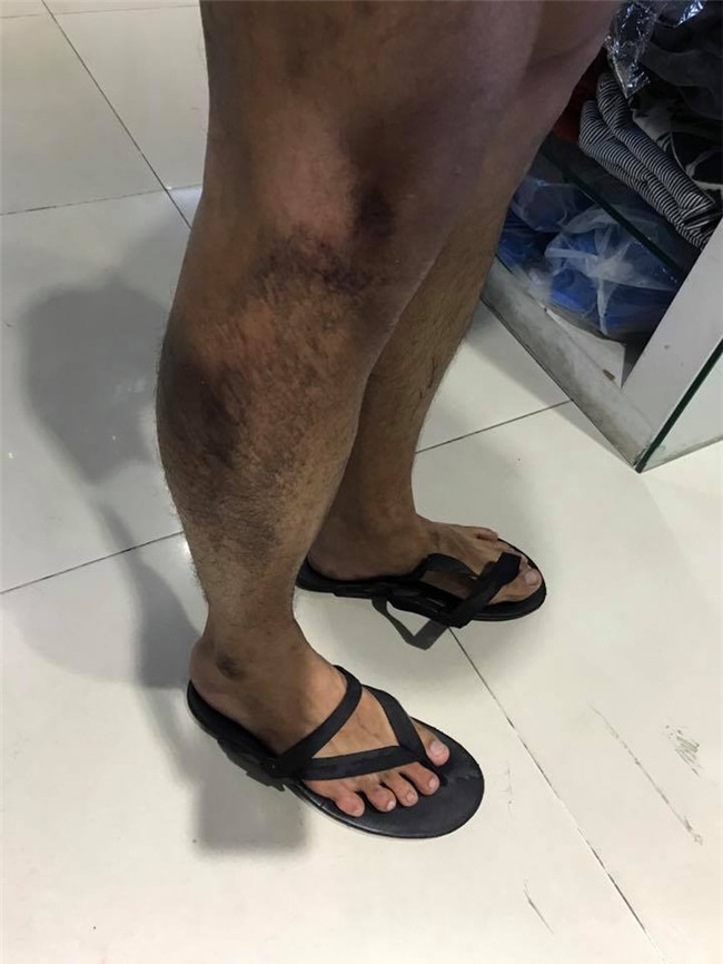 Lê Trung Cương chụp ảnh đôi chân sưng phù sau tai nạn.