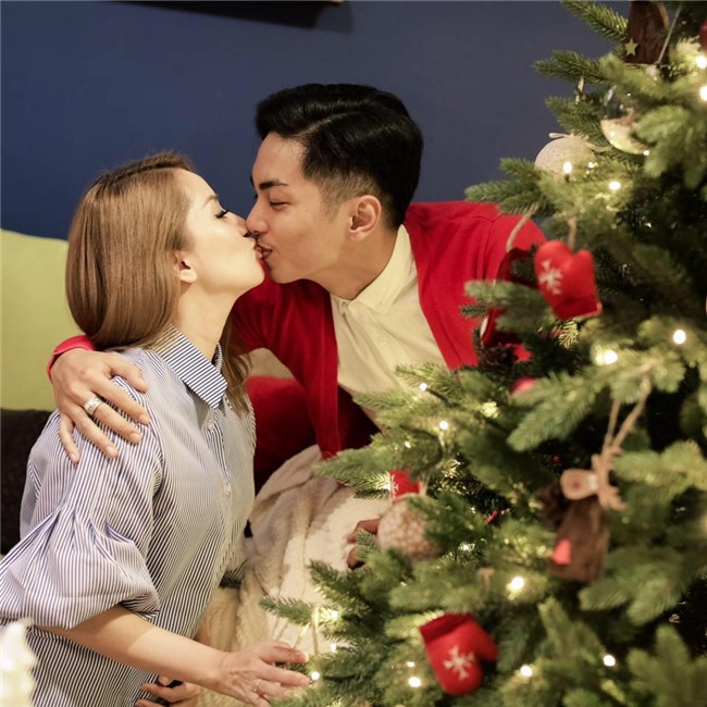 Cặp đôi Khánh Thi - Phan Hiển dành cho nhau nụ hôn ngọt ngào trong mùa Giáng Sinh mới