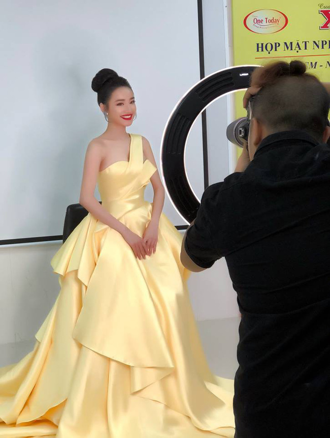 Trong tấm ảnh, Nhã Phương nổi bật với chiếc đầm vàng rực rỡ cùng mái tóc búi cao thanh lịch, cô hiện lên xinh đẹp và sang trọng như một nàng công chúa.