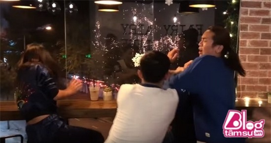 Tuy nhiên, khi lột khẩu trang của cô gái mà Trấn Thành tưởng là Hari thì hóa ra lại là… Nam Thư. Biết mình bị BB Trần và Hải Triều lừa nên cả hội đã quay ra đánh 2 người này một trận tơi bời. Và chàng trai lạ mặt lúc đầu bị Trấn Thành đánh lại là quán quân Cười xuyên Việt 2016 – Anh Tú.