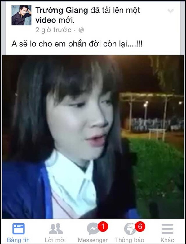 Trên trang cá nhân của Trường Giang vừa cập nhật dòng trạng thái dành cho Nhã Phương kèm theo một clip ngắn khiến các fan của cặp đôi này phát cuồng. Trong dòng trạng thái này, danh hài khẳng định: "Anh sẽ lo cho em phần đời còn lại" cùng với đó là ảnh của nữ diễn viên Nhã Phương.