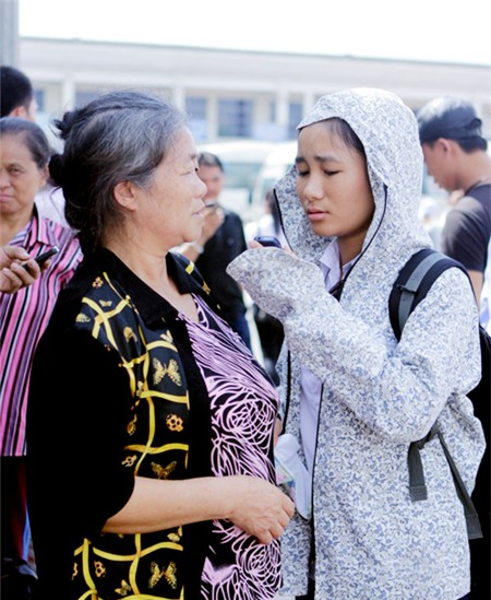 | Bà ngoại cũng đưa cháu gái đi thi. |