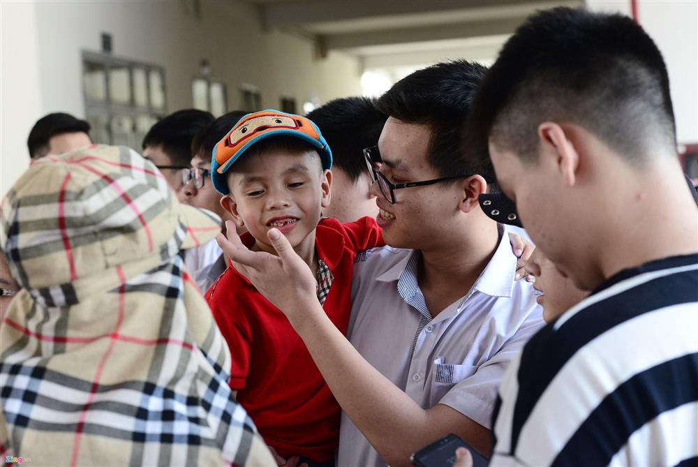 Nguyễn Thành Đạt, trường THPT Nguyễn Khuyến được mẹ và em trai vào tận trong sân chúc mừng sau giờ làm bài. "Đề thi khá dễ, vừa sức học của em và nhiều bạn cùng lớp. Em làm bài khá tốt", sĩ tử này tự tin nói.