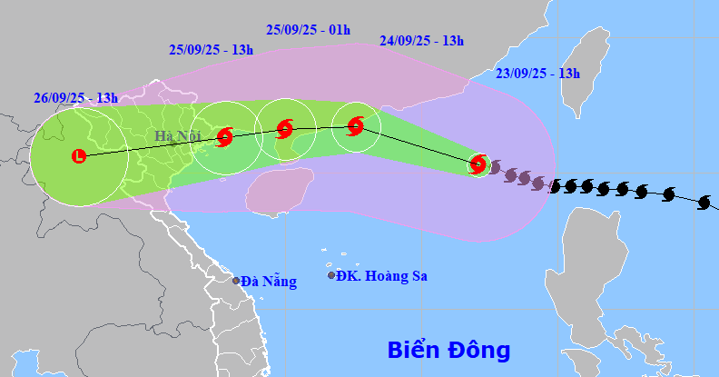 Dự báo trong ngày 25/9, bão di chuyển chủ yếu theo hướng tây với tốc độ lên tới 25-30km/h, từ sáng 25/9, vùng mây bão bắt đầu tác động đến đất liền nước ta, trưa 25/9, tâm bão đổ bộ đất liền khu vực Quảng Ninh - Hải Phòng với cường độ cấp 9, giật cấp 11.