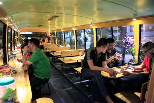 Hình thức kinh doanh bán cà phê trên xe buýt nở rộ ở Hà Nội từ khoảng đầu năm 2015. Những chiếc xe buýt “hết đát” được cải tạo nội thất và trang trí bắt mắt mang đến cho khách hàng uống cà phê một không gian mới lạ.