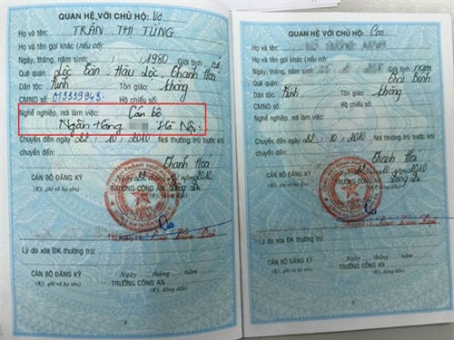 Nhà chức trách kết luận, Tùng đã tự viết thêm vào sổ hộ khẩu phần nghề nghiệp, nơi làm việc. Ảnh: Việt Đức. |