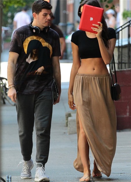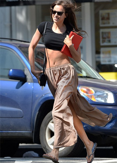 Hôm cuối tuần, siêu mẫu Nga để mặt mộc, xì tin chạy nhanh trên phố để kịp tới bữa hẹn ăn trưa cùng một người bạn trai tại Manhattan. Tay cầm iPad đỏ, vai đeo túi xách nhỏ xinh, bạn gái C. Ronaldo khóe khoe vòng eo nhỏ nhắn gọn gàng khi mặc áo lửng. Người đẹp diện váy dài nhưng xẻ tà ở hai bên, để lộ đôi chân thon mỗi khi bước đi. Chỉ một lúc sau khi tươi tắn chạy nhảy, Irina lại có vẻ ngượng ngùng, liên tục dùng iPad che mặt khi đi cùng một người đàn ông không phải là CR7.