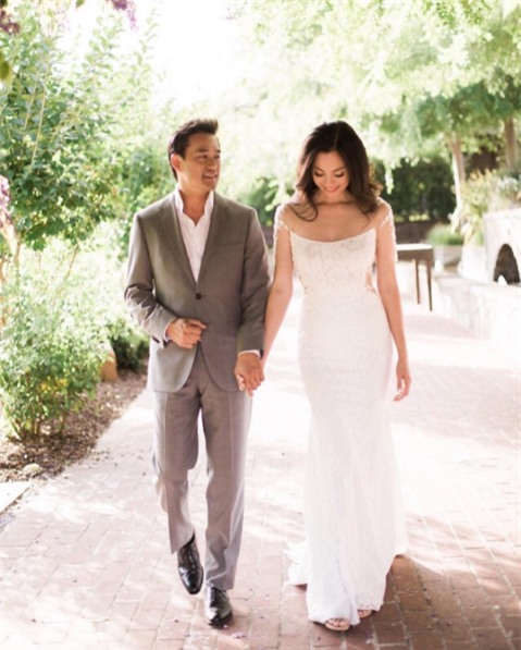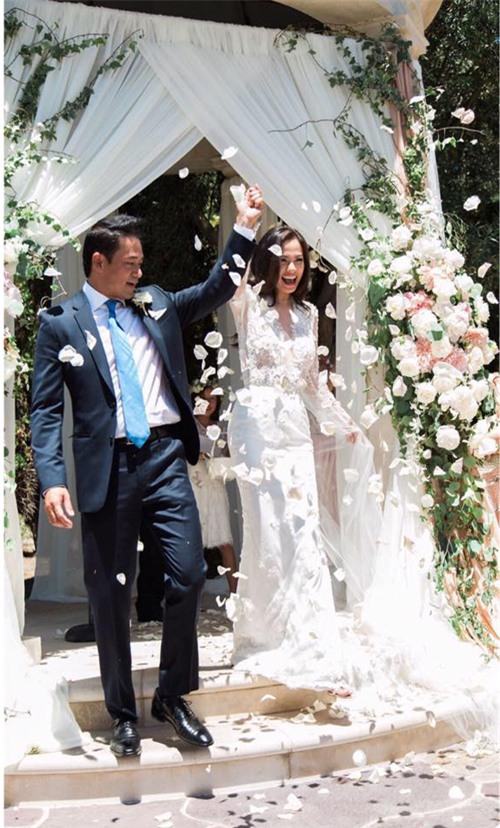 Trên trang cá nhân, siêu mẫu Ngọc Thúy chia sẻ khoảnh khắc nắm tay chồng tại lễ đường. Có thể thấy, siêu mẫu Ngọc Thúy đã có một đám cưới vô cùng lãng mạn tại Mỹ.