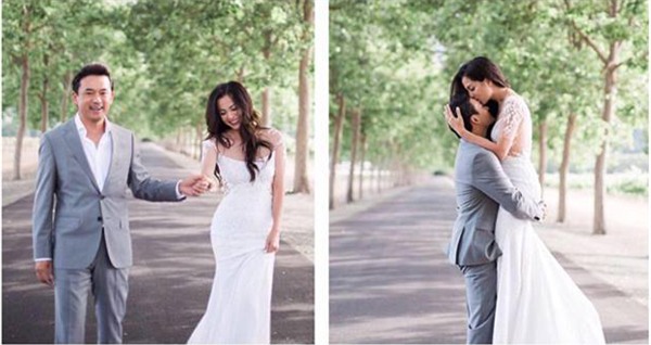 Trong ngày tái hôn, siêu mẫu diện soiree ren lộng lẫy, tôn lên vẻ đẹp trẻ trung và thân hình thon thả. Ông xã cô bảnh bảo với vest. Cặp đôi tình tứ chụp ảnh giữa bối cảnh đồng quê yên bình. |