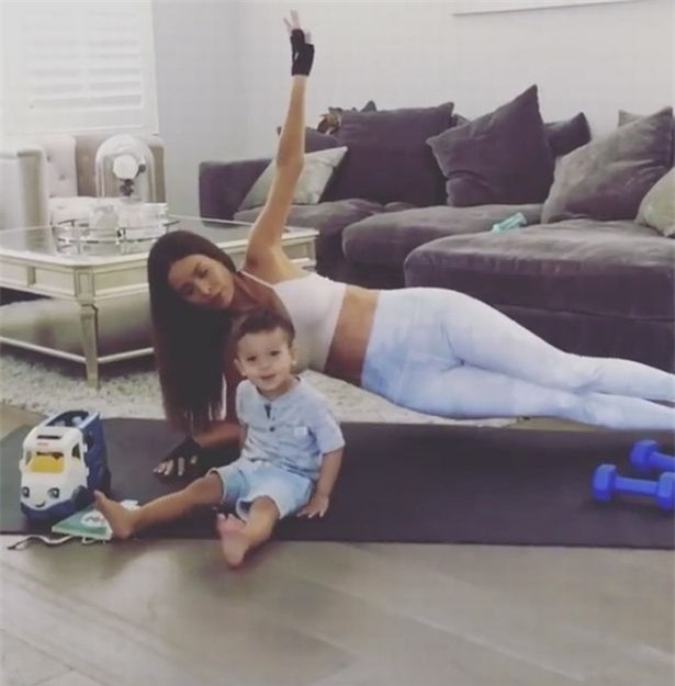 Hình ảnh trong đoạn video tập thể dục ở tháng thai thứ 8 được Sarah đăng tải.