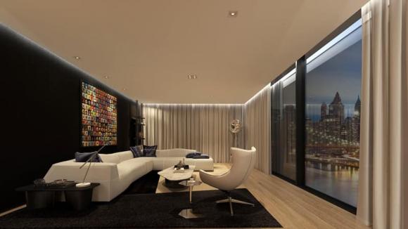 Phòng khách có view khủng, nhìn ra toàn thành phố