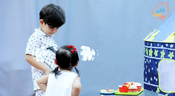 Lời thú nhận của cậu bé khiến ai cũng phì cười. Mặc dù Kubi nói vậy thôi, nhưng nhìn hành động cũng đủ hiểu cậu bé đang nhường nhịn em hết mực. Khi em tranh đồ chỉ lén mang đi giấu. Khi đánh lại thì cũng chỉ là vỗ nhẹ lên tay hoặc lưng em.