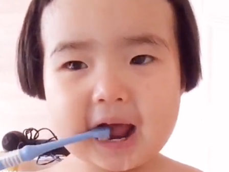 Bị mẹ bắt đánh răng mà khóc quá trời, vừa thương vừa yêu không tả nổi.