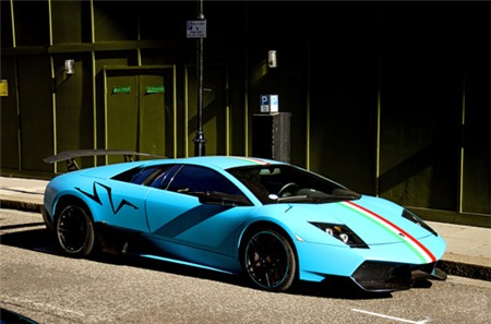 | Siêu xe Lamborghini Murcielago LP670-4 SuperVeloce trong bộ cánh xanh mờ, thời trang. Siêu xe này sở hữu sức mạnh 670 mã lực và mô-men xoắn cực đại 660 Nm, có khả năng đạt vận tốc tối đa 342 km/h. |