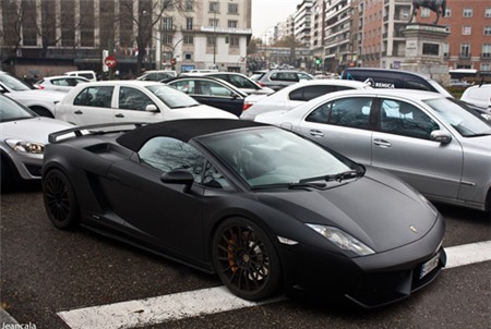 | Siêu xe Lamborghini Gallardo LP570-4 Superleggera trong sắc mờ đen bí ẩn. Siêu xe này sở hữu sức mạnh 570 mã lực và mô-men xoắn cực đại 540 Nm, có khả năng tăng tốc từ 0-100 km/h trong 3,4 giây và đạt vận tốc tối đa 325 km/h. |