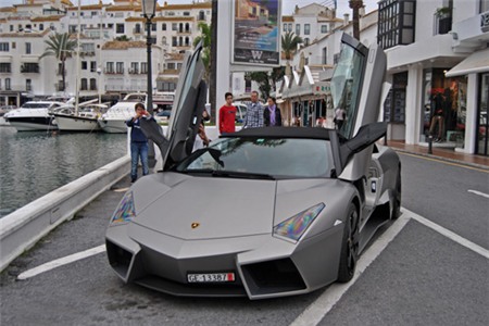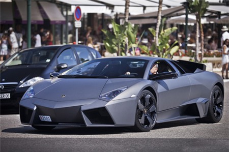 | Siêu xe hàng hiếm Reventon trong màu mờ xám. Trên toàn thế giới chỉ có 21 siêu xe này được sản xuất, trong đó một chiếc được sử dụng để trưng bày trong bảo tàng của Lamborghini. Reventon sở hữu sức mạnh 650 mã lực và mô-men xoắn cực đại 660 Nm, với khả năng đạt tốc độ tối đa 340 km/h. |