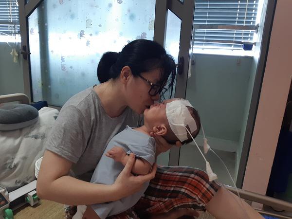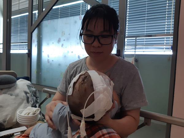 14 tháng tuổi Hà Trí trải qua 11 ca phẫu thuật, trên đầu chằng chịt những vết mổ.