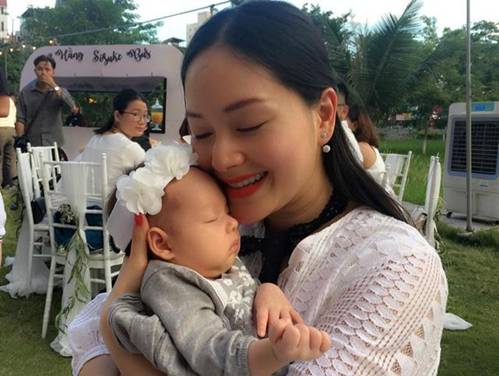 Lan Phương đưa con gái gần 2 tháng tuổi đi ăn cưới.