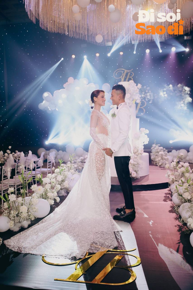 Trong tiệc tối, Phương Trinh Jolie đã thay tổng cộng 4 chiếc váy cưới từ các NTK nổi tiếng Vbiz