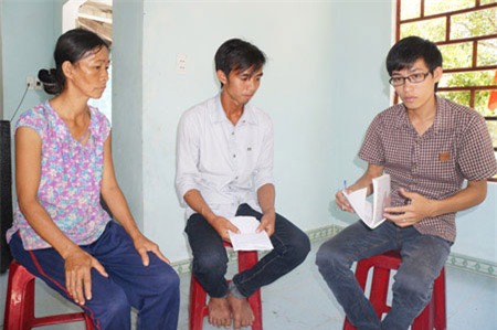 Phan Văn Bình (giữa) và mẹ trao đổi với PV. |